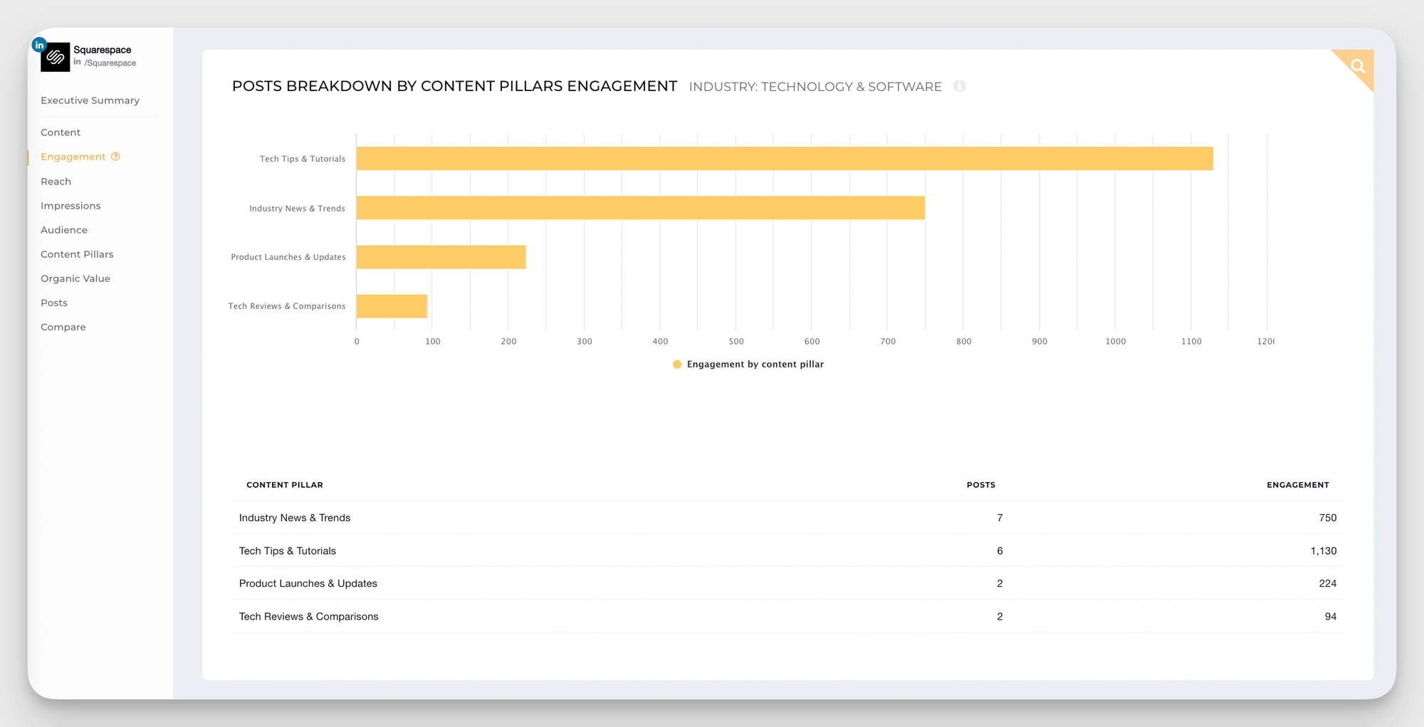 Content pillars are the foundational themes your brand posts around. Instead of evaluating posts one by one, pillar analysis groups them by topic so you can see which themes are consistently driving engagement at a strategic level. It's a different way of reading your content data — and in my experience, a far more useful one for making real decisions about where to invest.