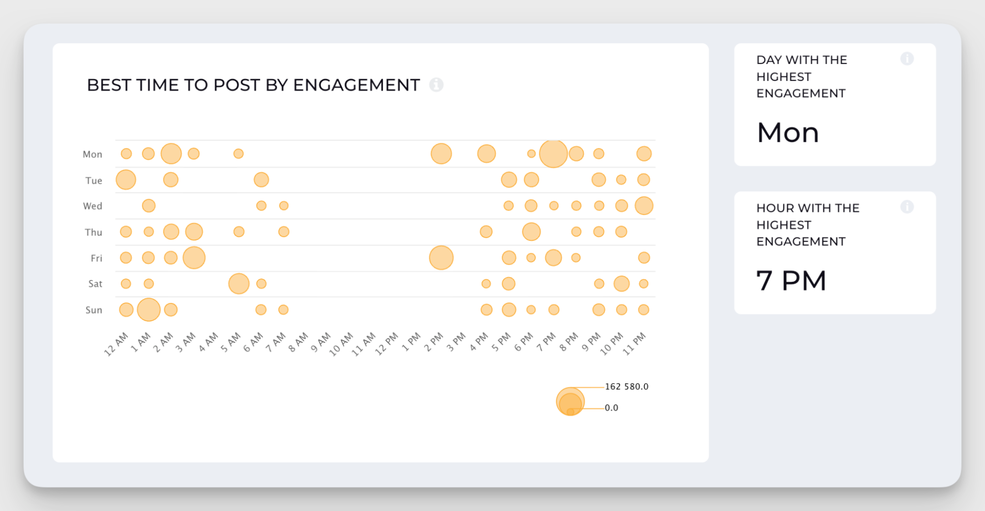 Socialinsider makes it easy to track when your audience is most active with data that shows the ideal times to share your content.