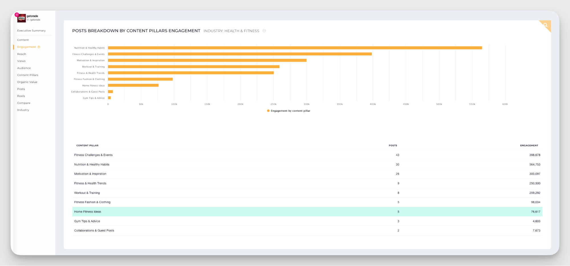For instance, content around Fitness Challenges & Events and Nutrition & Healthy Habits drove significant engagement. Recognizing this, Gatorade can now invest more in these areas to fuel even more interaction.
