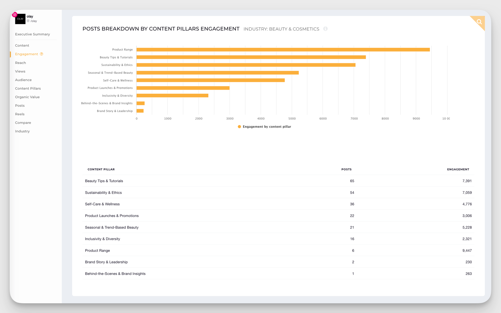 Use competitor content pillar analysis to identify gaps in your strategy. Look at what content pillars drive the most engagement in your industry and spot topics your competitors aren’t covering enough.