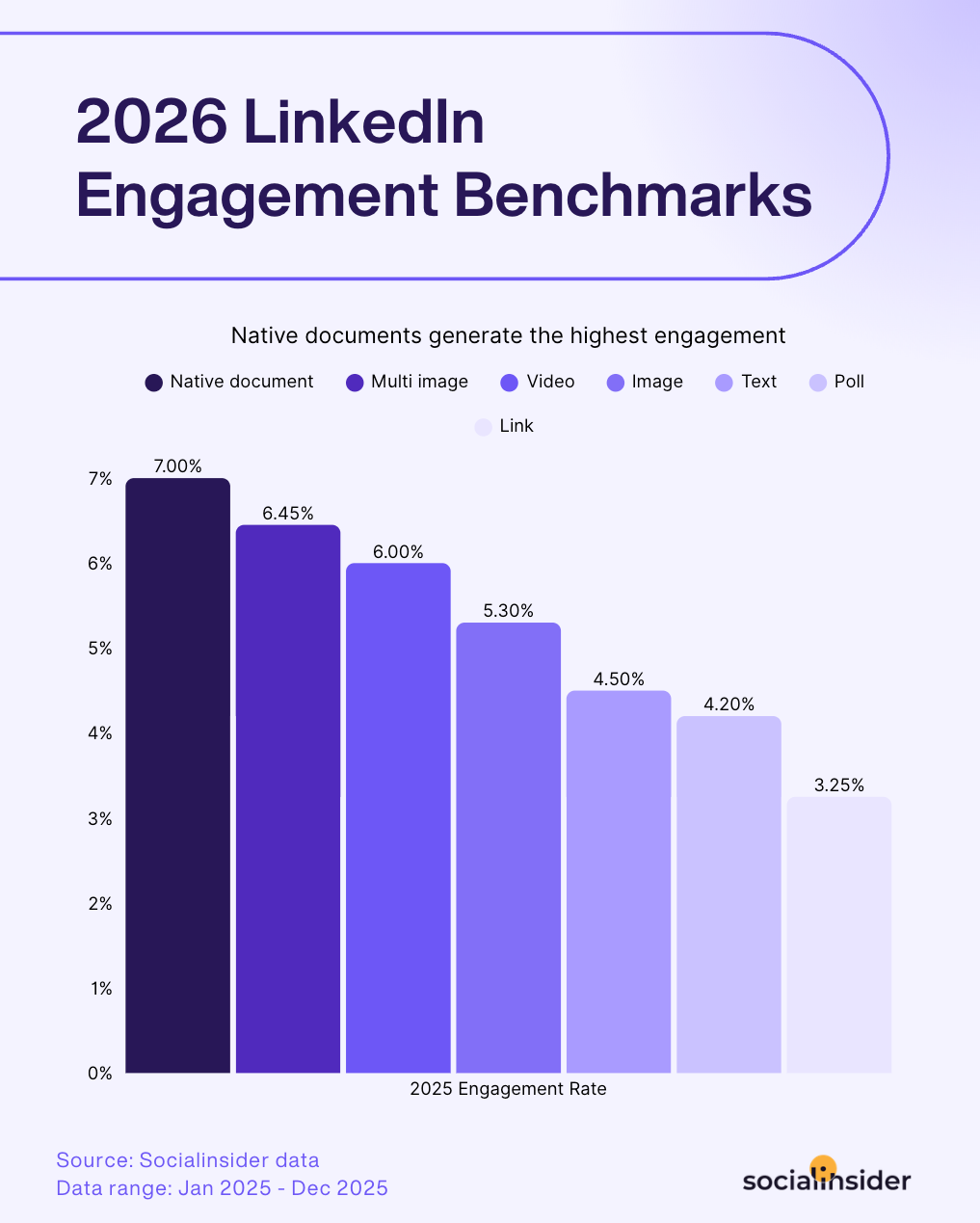 In this article, I’ll walk you through a step-by-step framework to help you build and improve your LinkedIn growth strategy, all based on data and 2026 Socialinsider benchmarks. Less guesswork, more practical, proven best practices.