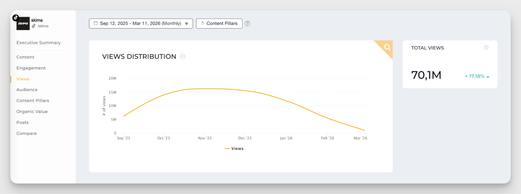 A useful example can be seen by analyzing Skims through the Socialinsider dashboard.